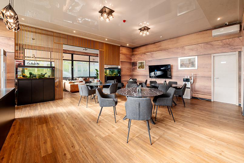 Naša klinika ima 18 sob – 6 dvoposteljnih apartmajev in 12 enoposteljnih in dvoposteljnih sob. Vsem pacientom smo zagotovili udobje in zasebnost.