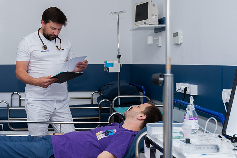 Paciente obravnava vrhunski tim zdravnikov specialistov, psihiatrov, anesteziologov, psihologov in specialnih pedagogov v najsodobneje opremljeni Mednarodni kliniki za odvajanje od odvisnosti.